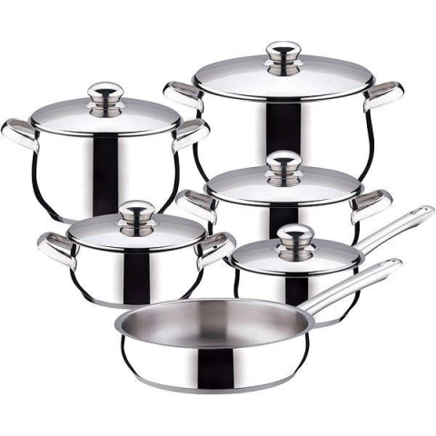 Edénykészlet - gáz, elektromos, indukciós és üvegkerámia főzőlaphoz, 5 fazék és 1 serpenyő a készletben, sütőben használható és mosogatógépben mosható, maximális sütési hőmérséklet a sütőben 200 °C, edény anyaga rozsdamentes acél, fazék külső felülete rozsdamentes acél, fazék belső felület rozsdamentes acél, fazék nyelének anyaga rozsdamentes acél, serpenyő belső felülete rozsdamentes acél, serpenyő külső felülete rozsdamentes acél, serpenyő