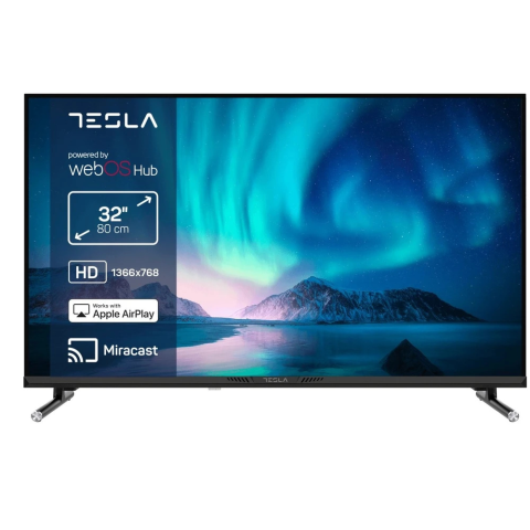 TESLA 32E645BHW típusú 32”-es Fekete színű televízió 1366 x 768 HD Ready felbontással.