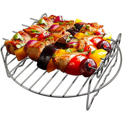 Fritőz tartozék - univerzális grill, kétrétegű, rozsdamentes acél, 4 grilltű, nyársak és húsok sütéséhez forrólevegős sütőben