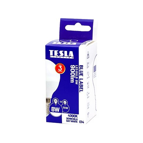 LED izzó - E14 foglalat, E energiaosztály, 8 W energiafelhasználás, 230 V feszültség, 900 lm fényáram, semleges fényű (4000 K), 4,5 cm átmérő, 25000 óra élettartam A megbízható Tesla Lighting LED izzó nagyon gazdaságos, élettartama pedig 25000 óra. Jelentősen kevesebb hőenergiát termel, mint a hagyományos izzók, ráadásul azonnal világít, látható villogás nélkül.
