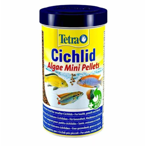 1 kép Tetra | Cichlid | Algae Mini Pellets | Táplálék sügér és diszkosz halak számára - 500 ml