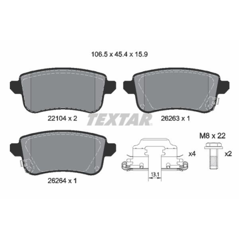 1 kép TEXTAR fékbetétkészlet, tárcsafék TEXTAR 2210401