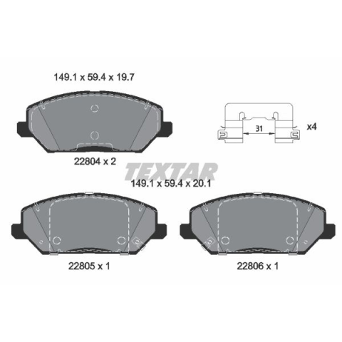 1 kép TEXTAR fékbetétkészlet, tárcsafék TEXTAR 2280401