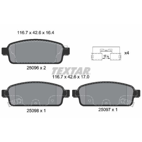 1 kép TEXTAR fékbetétkészlet, tárcsafék TEXTAR 2509602