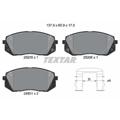 1 kép TEXTAR fékbetétkészlet, tárcsafék TEXTAR 2520501