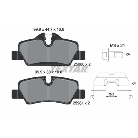 1 kép TEXTAR fékbetétkészlet, tárcsafék TEXTAR 2598001