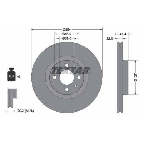 1 kép TEXTAR féktárcsa TEXTAR 92053503