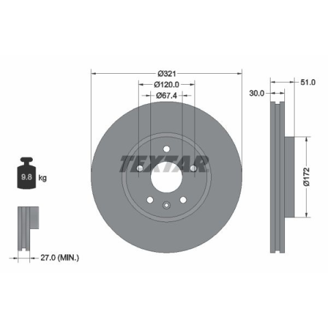 1 kép TEXTAR féktárcsa TEXTAR 92187005