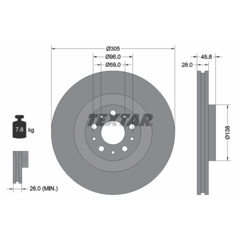 1 kép TEXTAR féktárcsa TEXTAR 92237603
