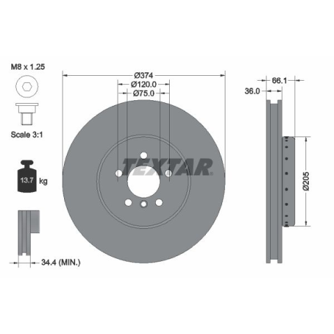 1 kép TEXTAR féktárcsa TEXTAR 92266125