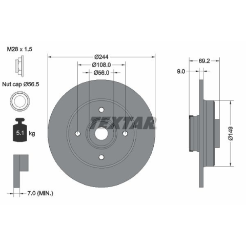1 kép TEXTAR féktárcsa TEXTAR 92305403