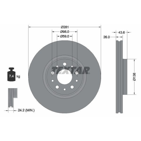 1 kép TEXTAR féktárcsa TEXTAR 92349303