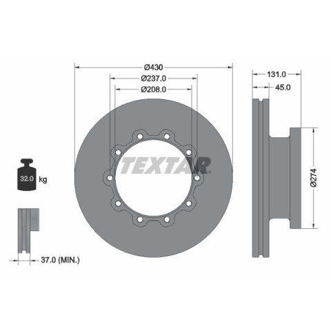 1 kép TEXTAR féktárcsa TEXTAR 93088300