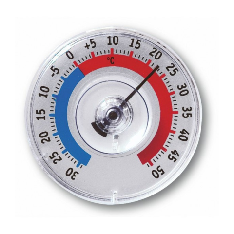 Ablak üvegre rögzíthető tapadókorongos kültéri hőmérő -30°..+50°C között mér, egyszerűen leolvasható Ø 80mm