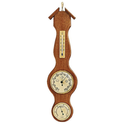 Barométer kombináció (légynyomásmérő, hőmérő és páratartalommérő) Mogyoró színű hátlappalMűszerek átmérője:hygrométer:65mm. barométer:85mm Teljes mérete: 440x115mm