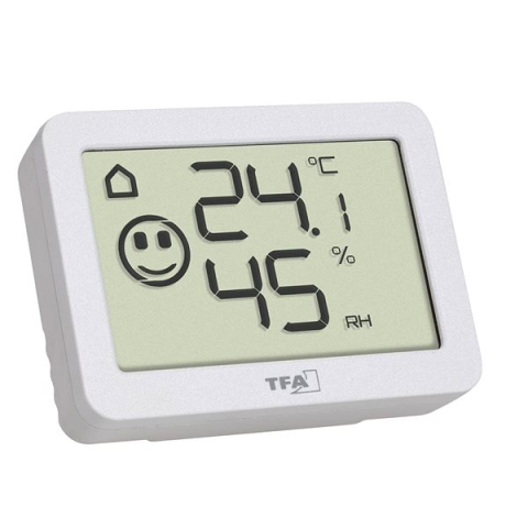 Digitális hőmérő - digitális hőmérséklet/páratartalom érzékelő, 4 beltéri klímazóna komfortfokozatának kijelzője, hangszerekhez, teknős és humidor felhasználás, max. -min. funkció, kicsi és kompakt kialakítás, mágnessel az állványhoz történő rögzítéshez, tápegység: 1×AAA típusú elem, fehér szín A TFA TFA30.5055.02 digitális hőmérő megbízhatóan méri a belső tér hőmérsékletét és páratartalmát. Megjeleníti a minimális és maximális mért