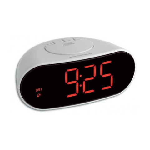 Digitális rádiójel vezérelt ébresztőóra, szundi funkcióval. Hálózatról működtethető. Áramkimaradás esetén elemmel a memóriában lévő adatok megtartására. A legnagyobb pontosságú rádiójel vezérelt óra • Nagy piros LED-es számjegyek • Időzóna és kéz
