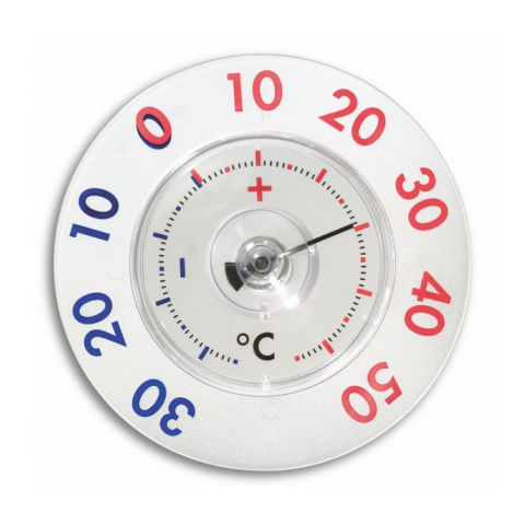 1 kép TFA Műanyag, bimetál ablakhőmérő, mely tapadókoronggal rögzíthető. 14.6014