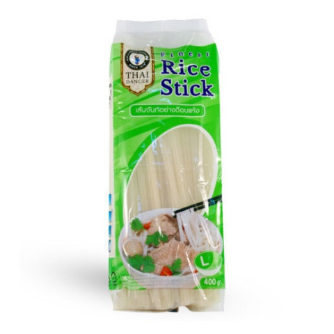 Thai Dancer rizstészta szélesmetélt 400 g A rizstészta, az ázsiai konyha nélkülözhetetlen alapanyaga. Összetevői: rizsliszt, víz. Felhasználási módja változatos, íze finom, és rendkívül egyszerű elkészíteni. Sokféle változata ismert: a vékonyabb a l