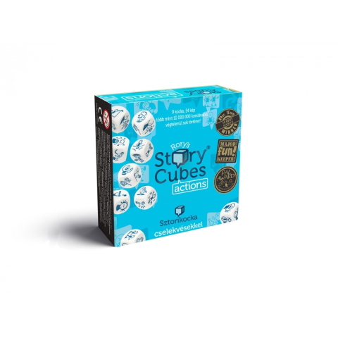 Az újabb 9 kocka 54 oldalának mindegyikén egy-egy cselekvés látható. Ötvözd a többi Story Cube-bal, és legyél te a meseszövés királya! Sztorikocka a legkeményebb rajongóknak! Vagy legalábbis azoknak, akik nem riadnak vissza az igazi kihívástól. Mert holmi kérdőjelből, meg célkeresztből asszociálni még egyszerű, a Sztorikocka Cselekvésekkel azonban valóban, az, ami - 54 piktogram tömény akció! Robban, esik, ordít, mászik, eltör, pattan, táncol, sír, csöpög.