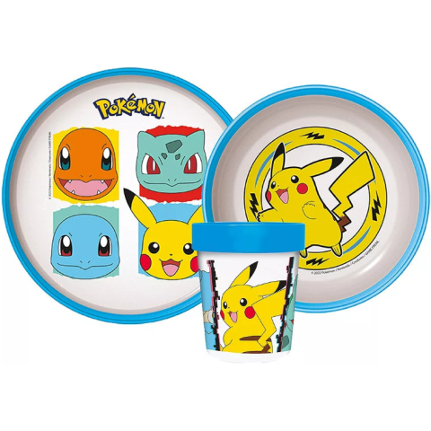 RAKTÁRRÓL AZONNAL! Pokémon csúszásmentes étkészlet, micro műanyag szett - BPA mentes - A termék környezetbarát, újrahasznosítható anyagból készült a Föld védelmében - Csúszásgátló talp rész A készlet tartalma: 1 db mélytálka (mikrózható műanyag) 1 db lap