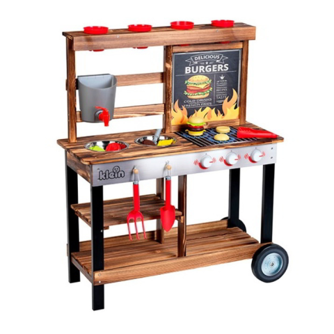 Theo Klein Kicsi Séf Játékkonyha: Készíts finom hamburgereket a szabadban! 🍔☀️ Ez a fantasztikus fából készült játékkonyha minden kis séf álma! Két mosogatóval, edényekkel és egy eltávolítható víztartállyal rendelkezik, így a kicsik kedvükre locsolh...