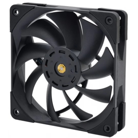 120mm-es házhűtő ventilátor PWM sebesség szabályzással és rezgéscsillapítós felfogató bakokkal.