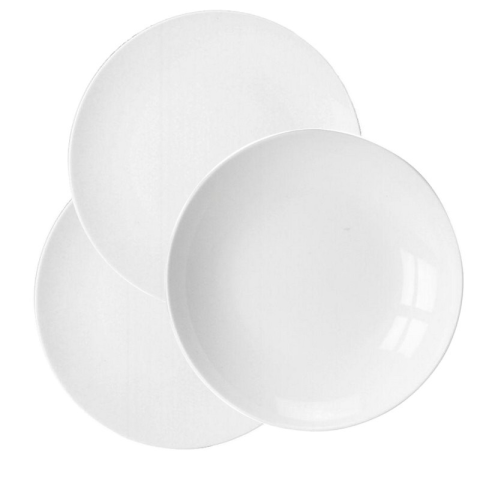 18 részes Thun Coup tányérkészlet. A készlet a következőket tartalmazza: 6 x sekély tányér, 6 x mélytányér és 6 x desszertes tányér. Ez egy finom, Karlovy Vary porcelán. A legmagasabb minőségű, egyszerű, időtálló kivitelezés. A fehér szín dekoráció nélkül minden enteriőrbe beleillik, és jól kombinálható más, díszített porcelánnal. A készlet tartalmazza: 6 x 221118150, 6 x 221118152 és 6 x 221118151.