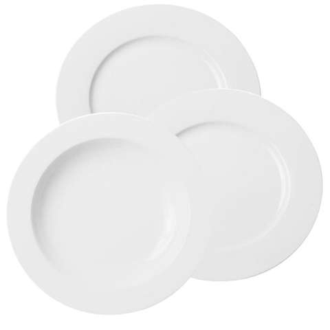 18 részes Thun Patrik tányérkészlet. A készlet a következőket tartalmazza: 6 x sekély tányér, 6 x mélytányér és 6 x desszertes tányér. A Patrik modellsorozat a hagyományos cseh Thun porcelán része. A tányérok mindennapos használatra alkalmasak, amelyek minőségi fehér porcelánból készültek. A készlet tartalmazza: 6 x 221118285, 6 x 221118281 és 6 x 221118283.