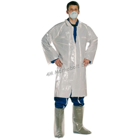POLIETILÉN RUHÁZATOK 41214-56220 Fóliakötény 56220: nagysága 120 x 70 cm • vastagsága 30 mikron • hátul kötős • Polietilén karvédő 45330: hossza 40 cm • vastagsága 30 mikron • mindkét végén gumírozott • Polietilén kesztyű 5950: hossza 23 cm • vastagsága 3