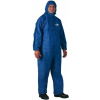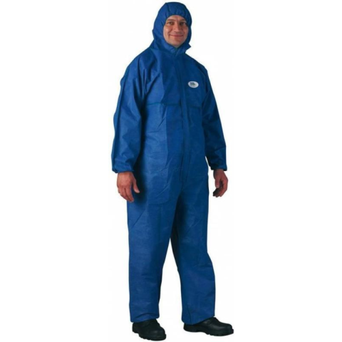 TIDY FR OVERALL:kék, három rétegű, kapucnis SMS polipropilén overall, 65 g/m²porok, folyadékpermetek, fröccsenő vegyszerek (pl. 30% kénsav, 10% nátronlúg) elleni védelem, illetve radioaktív részecskék és korlátozott láng- és hő elleni kiegészítő védelemmelkiváló szellőzőképességgumizott derék-, arc-, csukló-