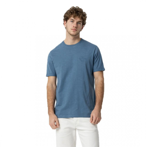 Rövid ujjú póló kerek nyakkivágással. Elöl hímzett logó. Bordázott nyakkivágás.