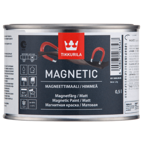 TIKKURILA MAGNETIC - 0,5L - mágnesezhető festék, szürke - vízesbázisú, beltéri használatra - száradás után 1-2 réteg falfestékkel átfeshető - matt - kiadósság: kb. 1,5nm/0,5L