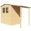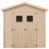 A Timbela M369F kerti faház 4,33 m2-es alapterületet kínál kerti gépek, szerszámok vagy bútorok számára. A stabil kétszárnyú ajtó (116 cm x 175 cm) 34 mm vastag kerettel és zárral megkönnyíti a nagy tárgyak berakását. A beépített ablak (39 cm x 45 cm) kellemes napfényt biztosít a belső térben. A 218 cm-es teljes magasságnak köszönhetően állva is kényelmes munkavégzést tesz lehetővé. Ez a modell nem tartalmazza a padlót. Klasszikus kialakítás Időtlen formá