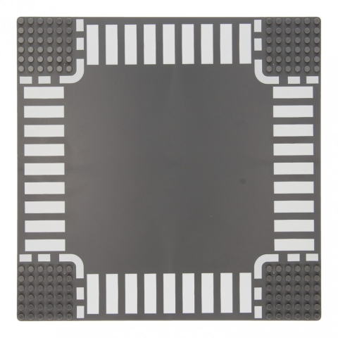 Kereszteződés Sluban 25×25 cm-es, szürke színű, utcai alaplap építőjátékokhoz. A Sluban építőjátékokat úgy tervezték, hogy kompatibilisek legyenek a legkedveltebb építőjáték gyártók termékeivel is, így a Sluban alaplapok és építőjátékok összeépíthetőek a