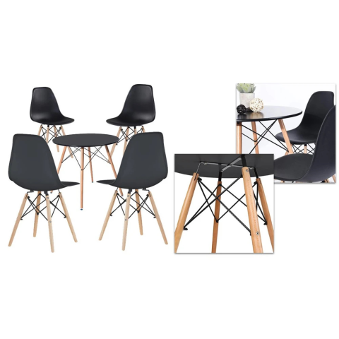 1 kép TIMELESS 4 db modern étkezőszék asztallal fekete HOP1001107-1
