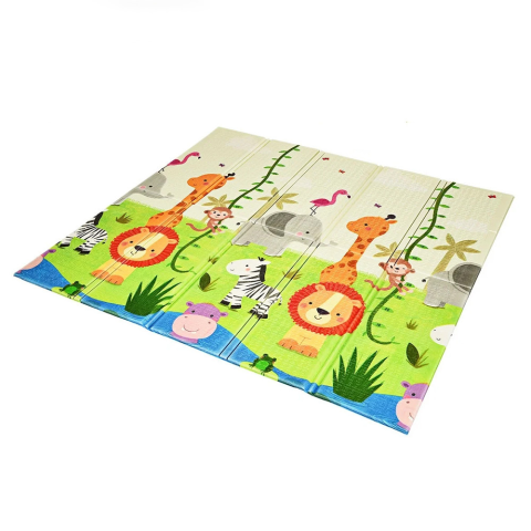 A kétoldalas játszószőnyeg ideális választás babák és kisgyermekek számára, hiszen biztonságos, puha felületet ad a mindennapi játékhoz, kúszáshoz és felfedezéshez. Az összecsukható játszószőnyeg vízálló XPE anyagból készül, könnyen hordozható táskában ér