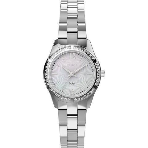 Karóra nőknek - analóg idő megjelenítés, óramű típusa quartz, kerek számlap, elegáns, arab indexek, ásványi számlap, 30 m (3 ATM) vízhatlanság, a tok anyaga ötvözet, a tok színe ezüst, a szíj anyaga öntvény, a szíj színe ezüst, 13,5 - 19 cm csuklóméretre A kiváló minőségű TIMEX TW2V39300 nőknek karóra jól jön a mindennapok során. Az alapját egy 28 mm széles kerek számlap alkotja. A Quartz technológia rendkívüli megbízhatóságot és hosszú élettarta