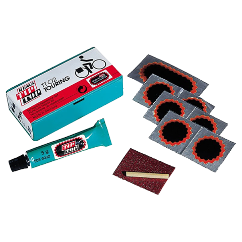 Túra gumijavító készlet 7 db folttal, nagy tubus ragasztóval.