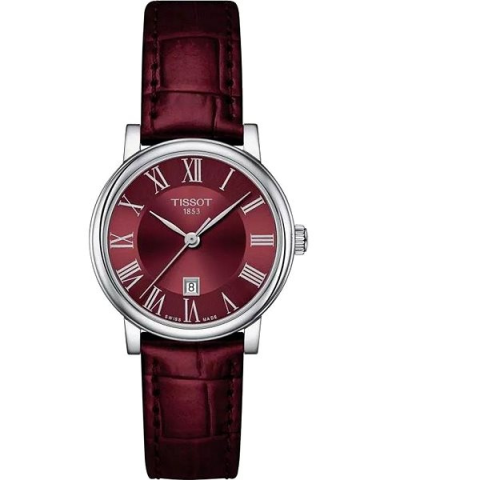 Karóra nőknek - analóg idő megjelenítés, óramű típusa quartz, kerek számlap, dátum, elegáns, római indexek, zafír számlap, 50 m (5 ATM) vízhatlanság, a tok anyaga acél, a tok színe ezüst, a szíj anyaga bőr, a szíj színe piros, cserélhető szíjjal A kitűnő TISSOT Carson Quartz T1222101637300 nőknek karóra nagyszerű viselet hétköznap és ünnepnap is. Az alapját egy 30 mm átmérőjű kerek számlap képezi. A Quartz technológia precíz mérést és hosszú