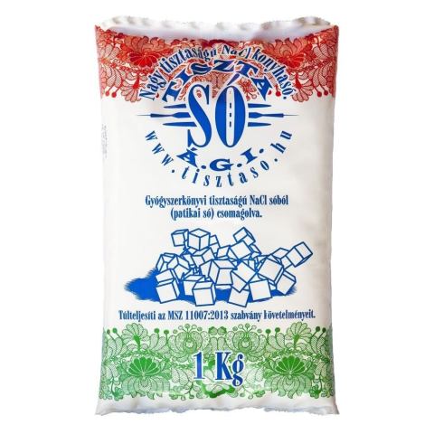 Gyógyszerkönyvi tisztaságú NaCl sóból (patikai só) csomagolva.