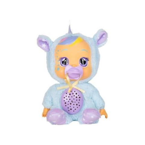 Vajon ki tudja megnyugtatni a lefekvéshez készülődő Jenna babát?Jennának lila szeme van és szivárványos (rózsaszín, sárga és lila) haja, valamint kis világoskék kapucnis plüss pegazus ruhát visel. A baba fülének belseje és a hasa világos lila, fehér csillagokkal és ezüst pöttyökkel díszítették, a talpa világos lila színű. Cumija színe szintén lila.Mint minden Cry Baby, ő is elkezd könnyezni és sírni, ha a gyerekek kiveszik a cumiját a szájából, de amint