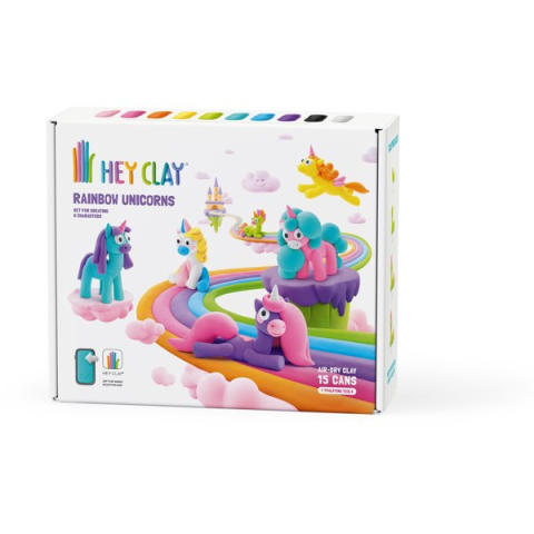 Gyurma - puha, könnyen formázható és levegőre száradó, állatok témakör, többszínű, 3 éves kortól ajánlott, a csomag 15 darabot tartalmaz A HEY CLAY Egyszarvúak kreatív készlettel a gyerekek hat varázslatos figurát készíthetnek puha gyurmából, amely egyesíti a gyurma rugalmasságát a hab könnyedségével és finomságával. Az anyag biztonság