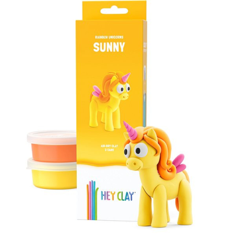 Gyurma - puha, könnyen formázható és levegőre száradó, állatok témakör, többszínű, 3 éves kortól ajánlott, 45 grammos kiszerelés, a csomag 3 darabot tartalmaz A Hey Clay Sunny gyurmakészlet 3 éves kortól szórakoztatja a fiúkat és a lányokat. A puha gyurma a kis gyermekkezek számára is könnyen formázható. A készlet 3 tégelyt tartalmaz 5 különböző színű gyurm