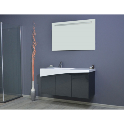 TMP SMYRNA 120 fali fürdőszobabútor - ANTRACIT - Akrivit öntött márvány mosdókagylóval 120 cm A SMYRNA 120 magasfényű antracit színe, letisztult modern vonalai és a műmárvány mosdókagyló teszi igazán népszerűvé. Nagy mérete és a 3 külön nyítható ajtó tesz