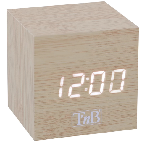 1 kép TNB JOY fa borítású LED kijelzős ébresztőóra kocka alakú