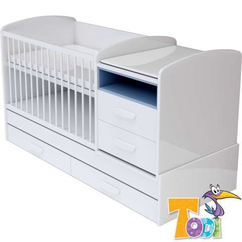 1 kép TODI Bianco kombi kiságy pelenkázó komóddal - bordázott fehér/kék