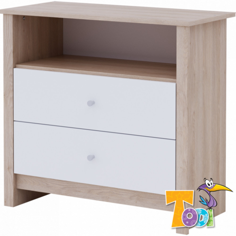 A Classic bútorcsalád sonoma tölgy és bordázott fehér színének köszönhetően örök divat. Szinte bármelyik színnel harmonizál, ezért tökéletes választás egy trendi babaszoba kialakításához! A Classic komód 2 zárt fiókkal és egy nyitott résszel rendelke