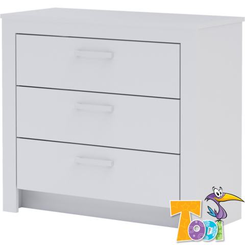 Pelenkázó szekrény A White Bunny bútorcsaládunk modern, szögletes formája, erezett fehér – magasfényű fehér színkombinációja visszafogott eleganciát kölcsönöz babaszobájának. A White Bunny 3 fiókos komód 23 cm magas fiókokkal rendelkezik, melyek kiváló