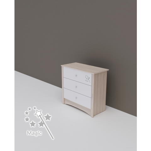A Magic elegáns, klasszikus megjelenésű termékcsalád, amely szupermatt felületű, fahatású bútortesttel és magasfényű fehér fronttal rendelkezik. A bútorok magic matricával díszíthetőek! A matrica külön vásárolható meg, NEM alap tartozék!! A Magic eleg